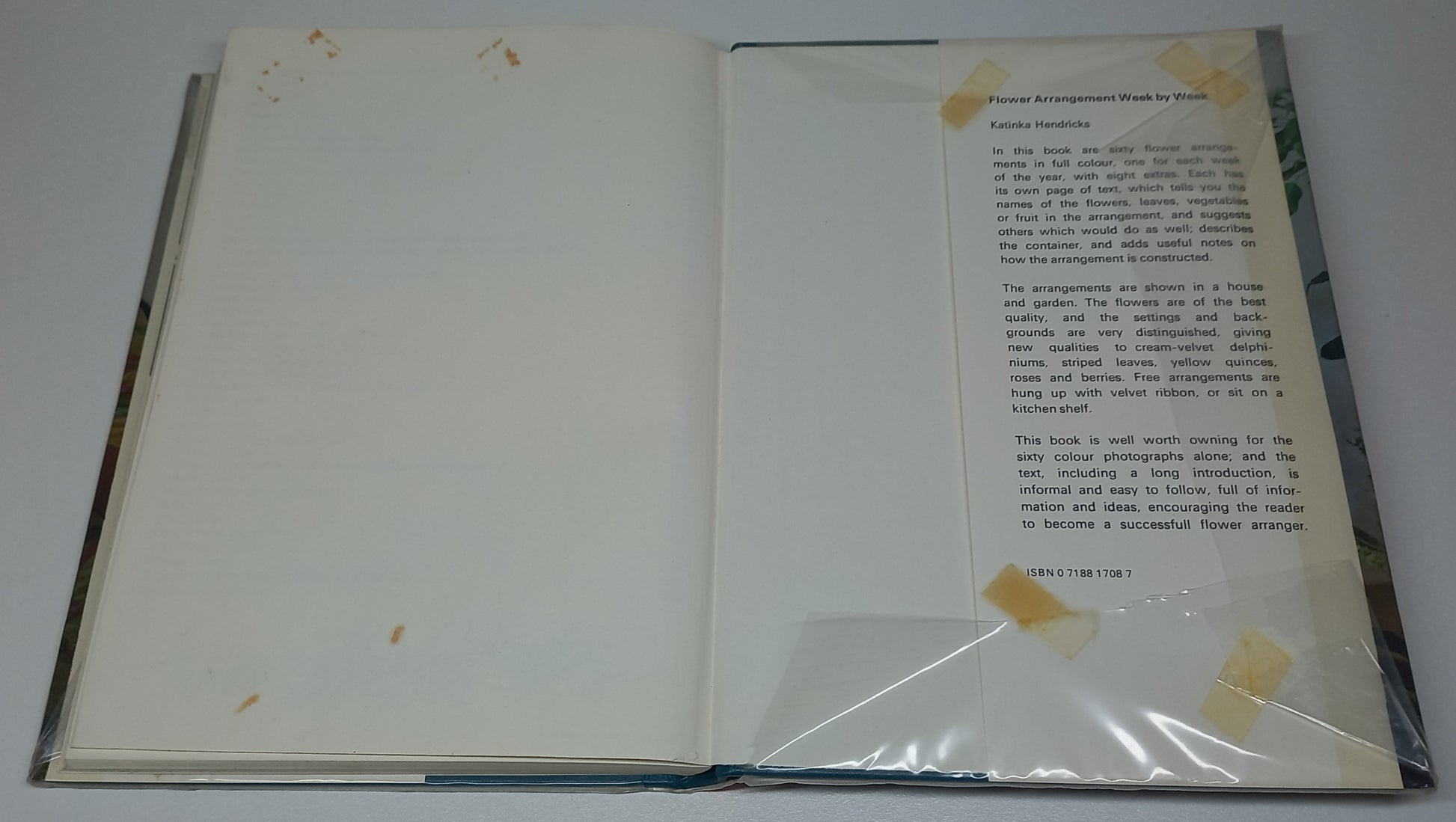 This book is covered in plastic to protect the book however the cellotape from the covering has left marks on the inside of the front and back covers.