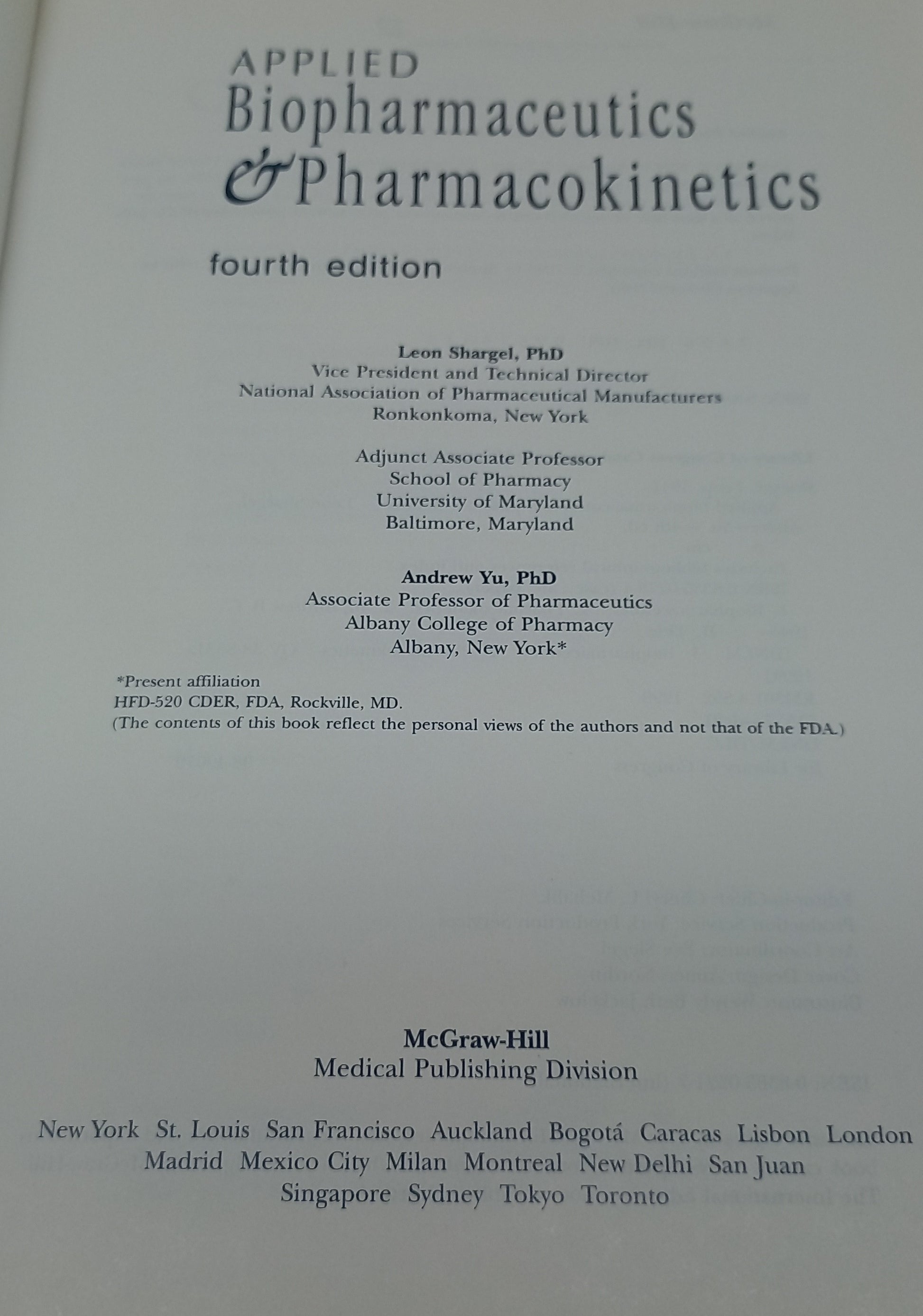 Applied Biopharmaceutics & Pharmacokinetics 4th Edition