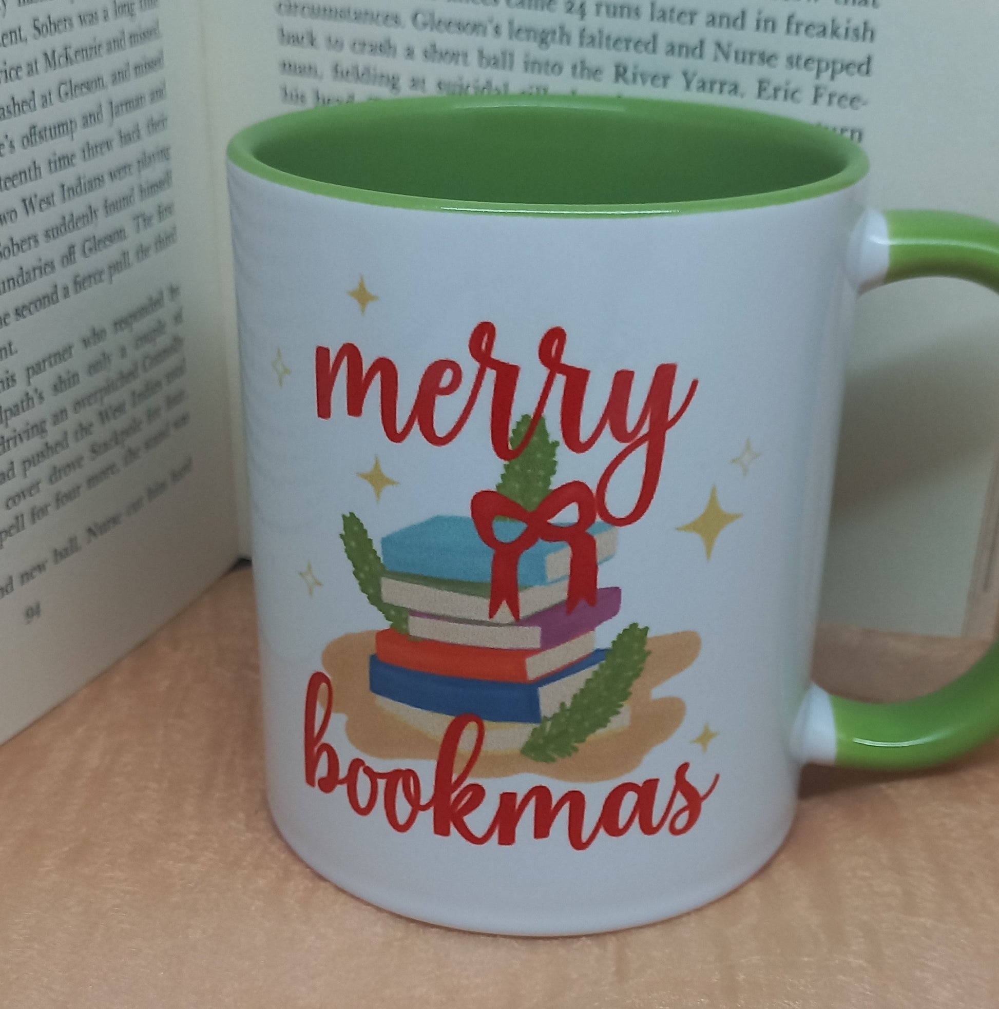 Sip the season in style with our beautifully crafted Merry Bookmas ceramic mug. This 11oz, standard-sized mug features a clean white exterior paired with a green interior and matching handle, giving it a charming two-toned finish. The exclusive artwork, designed by Awfully Bookish, brings a cozy, bookish twist to your holiday celebrations. Perfect for enjoying your favourite hot drink while diving into a good book — or gifting to the book lover in your life.
