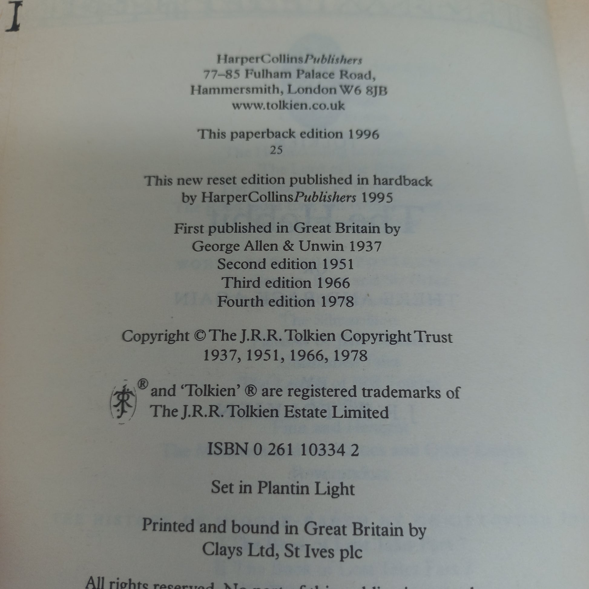 The Hobbit by J.R.R. Tolkien (Middle-Earth #0) Printed in 1996