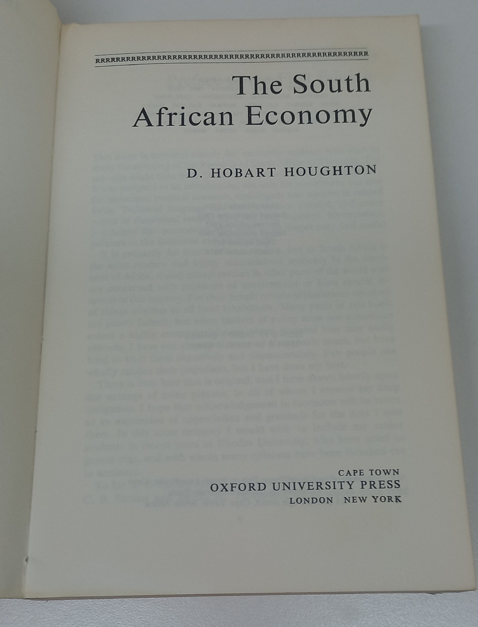 The South African Economy by D. Hobart Houghton Fourth Edition 1976